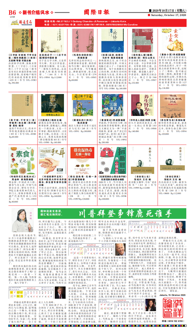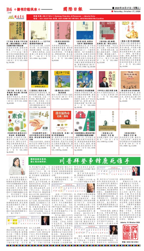 Guntingan Koran di atas adalah tulisan Xiangyi yang dimuat Koran Guoji Ribao pada 17 Oktober 2020 tentang prediksi hasil pemilu AS lengkap dengan uraian tanggal lahir calon presiden dan wakil presiden yang bertarung.